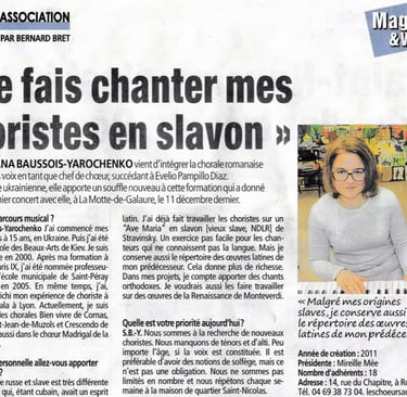 Nous sommes un ensemble vocal de 25 choristes, engagés dans la diffusion d'œuvres musicales variées et de qualité.